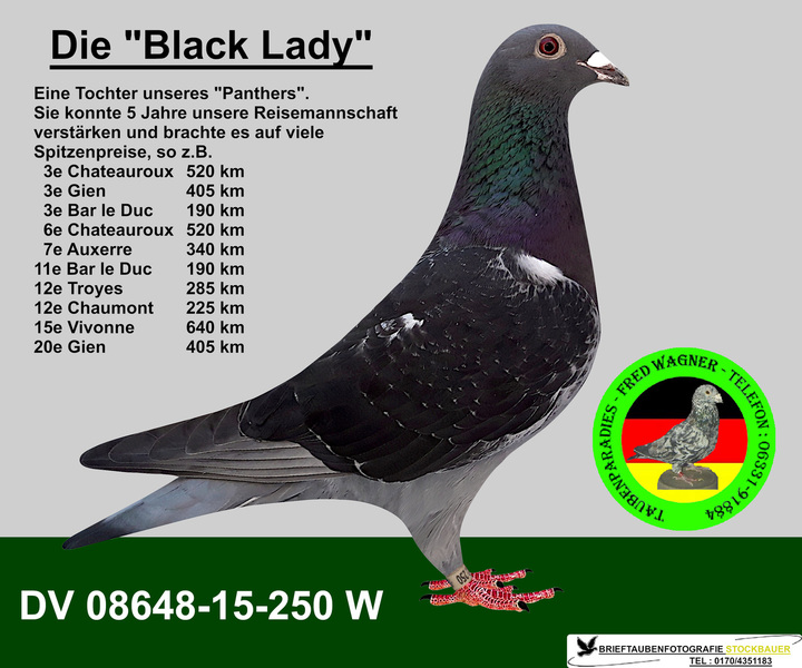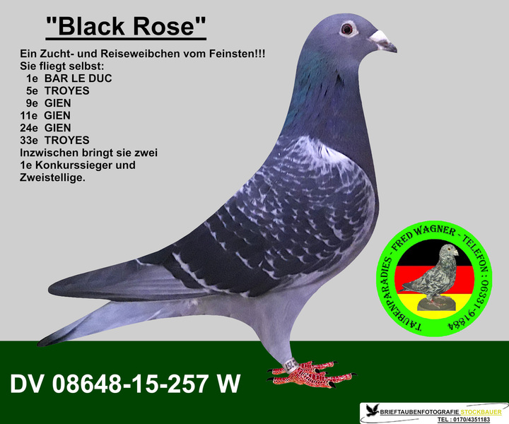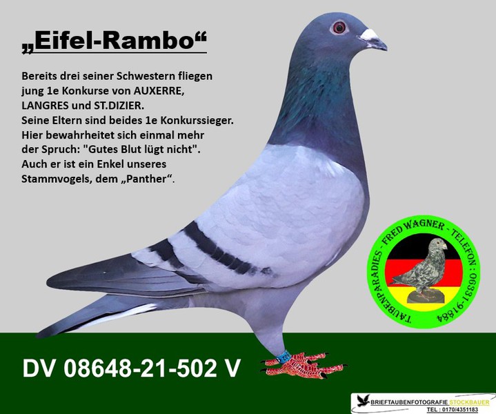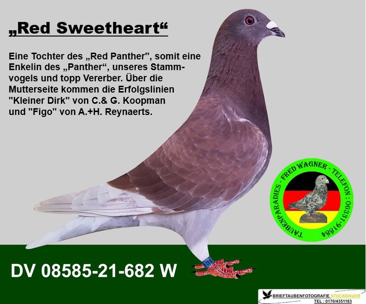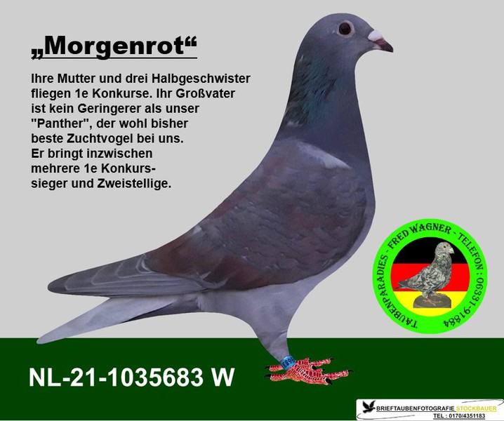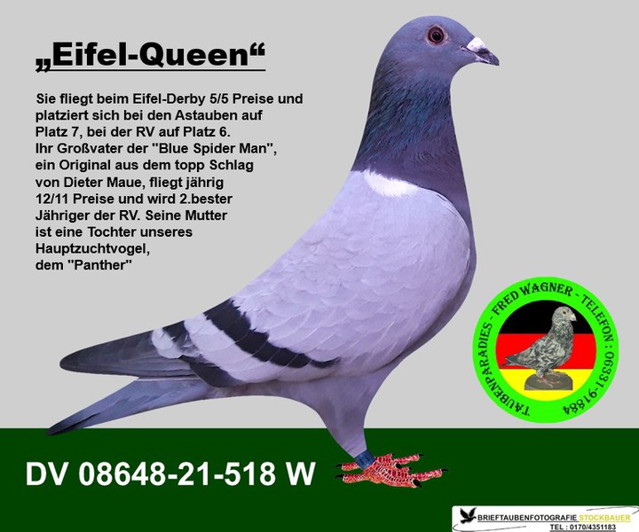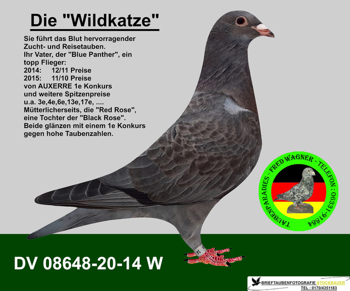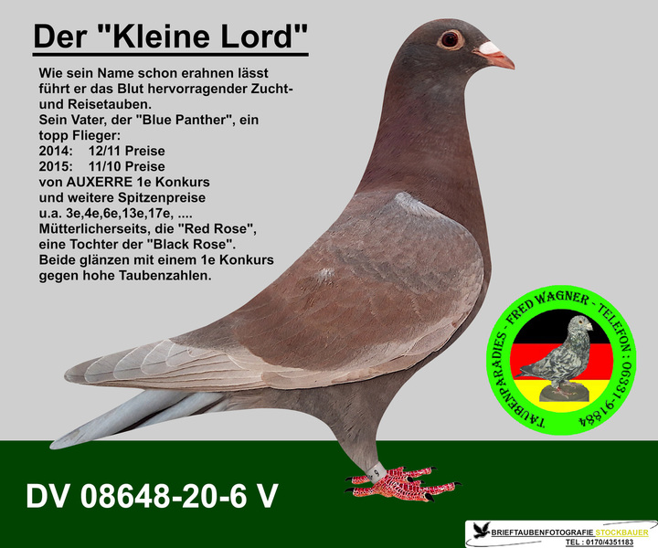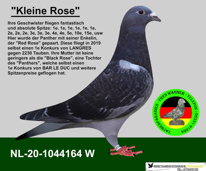 Eine weitere Zuchttaube, die auf keinen Fall unerwähnt bleiben darf, ist der "504". Er fliegt selbst 2x 1. Konkurs, zeistellig und viele Spitzenpreise. Es dauerte nicht lange, bis er sich dann als ein absoluter Topper in der Zucht herauskristallisierte. Mehrere direkte Kinder, aber auch die Enkelgeneration, sorgen inzischen für erfolgreiche Nachzucht. Er ist ein Garant für Beständigkeit, frühe Preise und erste Konkurse.