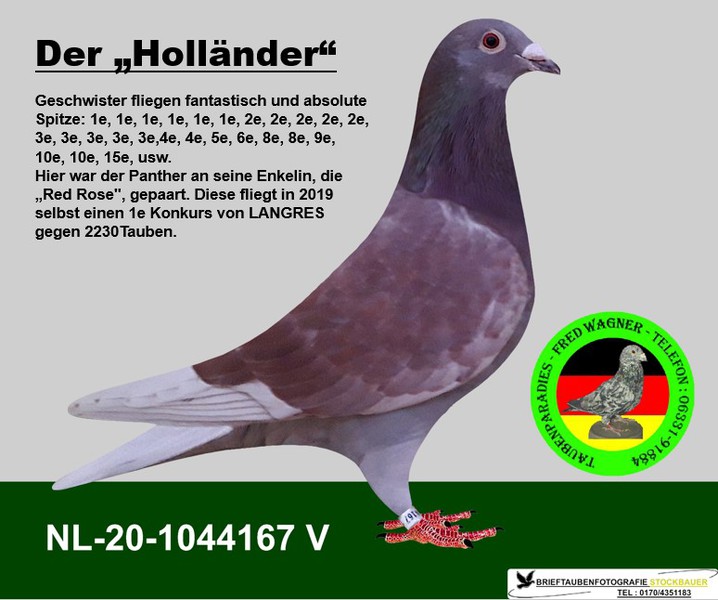 Der "Don Juan" bringt mit einer Tochter unseres "Panthers" bereits drei Jungtauben, welche einen 1e Konkurs fliegen und auch sonst viel Spitze.