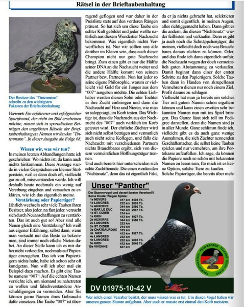 Das Fachmagazin für den Brieftaubenzüchter